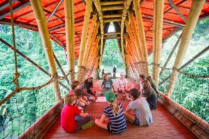 Bamboo structure bridge in the area of the Permaculture Garden, seen from the Primary School Campus. Source: https://bali.greenschool.org/