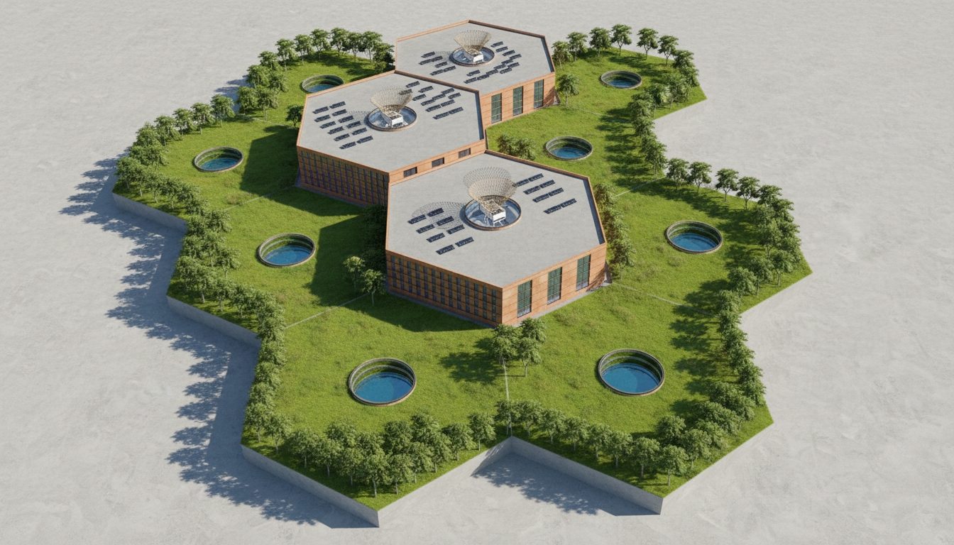 This project joins diverse roots of knowledge, such as Biomimicry, Sacred Geometry, Biophilic Design, Energy Efficiency, Vernacular Architecture, Bioclimatic Architecture, Vedic Fractal Knowledge, and Alchemy.